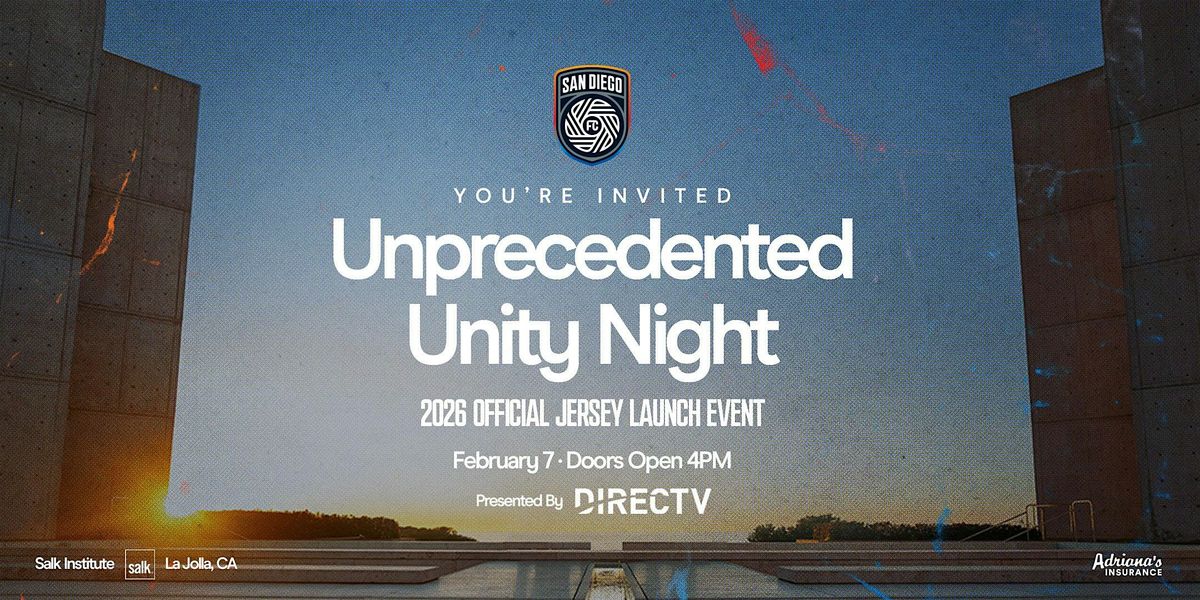 Join us for Unprecedented Unity Night, presented by DIRECTV on February 7, 2026. As our season kicks off, San Diego FC’s inaugural jersey will be revealed in an unforgettable setting: the Salk Institute an icon of design, vision, and bold ideas. A fitting place to start the next chapter of football in our history.