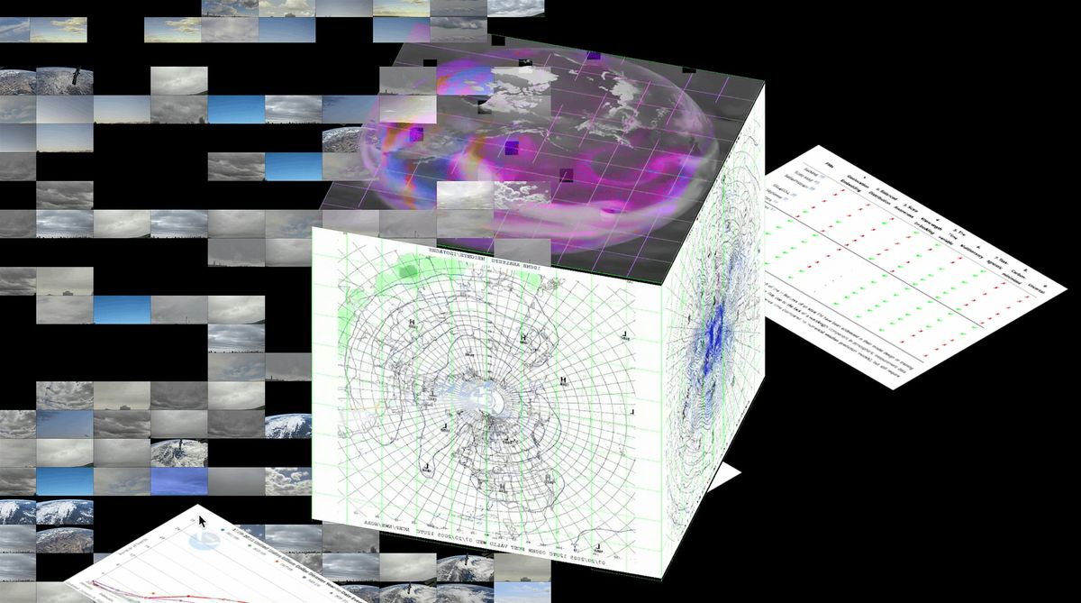 Unpredictable Atmosphere reimagines the internet as an optical device to unfold climate models in digital space. It addresses the limitations of AI foundation models in climate forecasting, which often ignore outliers—extreme weather events such as hurricanes and heatwaves—that push the atmosphere to its breaking point. These events represent phenomena that cannot be fully modelled and remain hidden in AI’s blind spots. Unpredictable Atmosphere views the atmosphere as an archive of transformation, much like an architectural object, preserving technological residues. It crumbles conventions and explores how outliers in counter-modelling practices can reshape our understanding of climate, weather, and space.