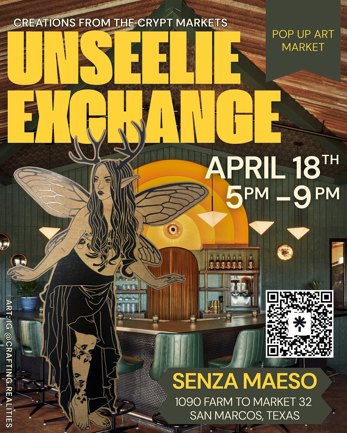 April 18th, from 5-9 PM, at Senza Maeso in San Marcos, Texas. Enjoy art, giveaways, drinks and more!