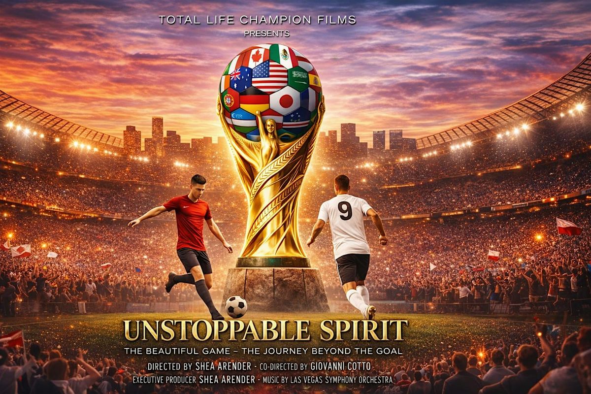 Total Life Champion Films Presents : "Unstoppable Spirit: The Beautiful Game - The Journey Beyond The Goal Unstoppable Spirit is a powerful documentary that explores the cultural heartbeat of the World Cup and its profound impact on communities across the globe. Based in Houston, Texas As the world unites through the beautiful game, this film weaves together the stories of professional athletes, health and wellness experts, coaches, community leaders, and everyday players whose lives have been shaped by soccer's global stage. From neighborhood fields to the grand arenas of the World Cup, Unstoppable Spirit reveals how the game transcends race, age, nationality, and circumstance-connecting people through a shared pursuit of excellence and belonging. Through intimate interviews and compelling narration, the film captures journeys marked by sacrifice, resilience, discipline, and unwavering belief. At its core, this is a story of grind and accomplishment, of overcoming adversity, chasing impossible dreams, and stepping fully into one's purpose and destiny. It is a testament to the human spirit and the unifying power of sport, reminding us that while only a few lift the trophy, the true victory belongs to everyone who dares to dream.