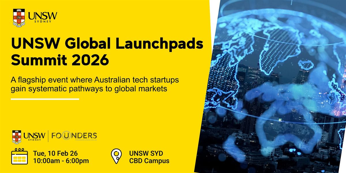 On 10 February 2026, UNSW is bringing startup founders together with global investors and international government partners across 10 dedicated country roomsβUSA, China, India, Germany, France, Singapore, UAE, Japan, Korea, UK and Indonesia. This UNSW Global Launchpads is a 1-day summit where tech startups gain concrete pathways to global markets.