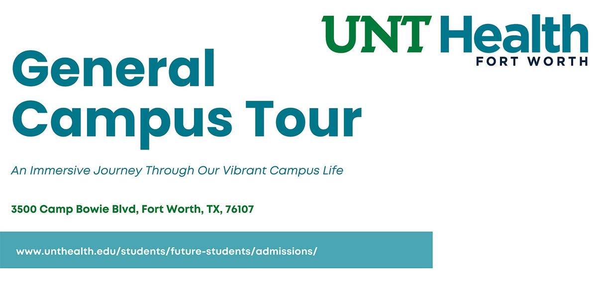 Come join us for an exciting opportunity to explore UNT Health Fort Worth! Our campus tour will give you a firsthand look at our facilities, classrooms, and student life. Whether you're a prospective student, a parent, or just curious about our campus, this event is perfect for you. Get ready to walk around, ask questions, and get a feel for what it's like to be a part of our community. Don't miss out on this chance to see where the magic happens!