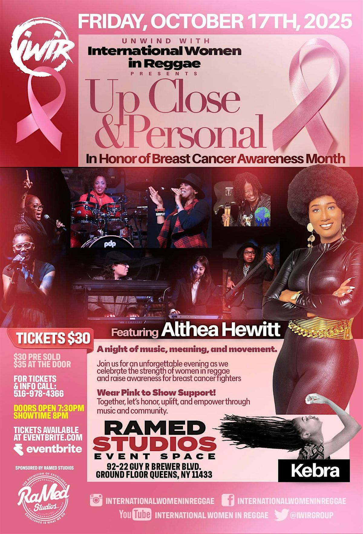 Welcome to Up Close and Personal with International Women in Reggae! Join us at RaMed Studios Event Space on October 17, 2025 at 8:00 PM for a night filled with amazing music and empowering vibes.