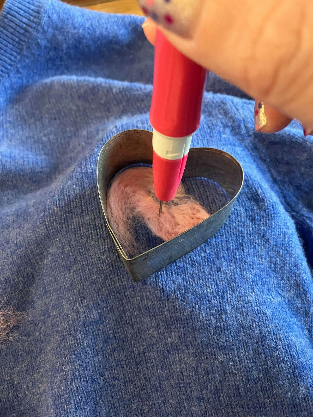 I will provide the needle felting equipment, you just need to bring along the item or items you’d like to decorate! Rummage through your drawers at home, have a look at local charity shops or take a look on Vinted. The only stipulation is that the item is knitted (it doesn’t have to be 100% wool), a cotton sweatshirt or t-shirt won’t work for example. Acrylic and polyester knits are absolutely fine for this craft too, please do message me with pictures of your pieces or bring multiples along and we can take a look on the night.