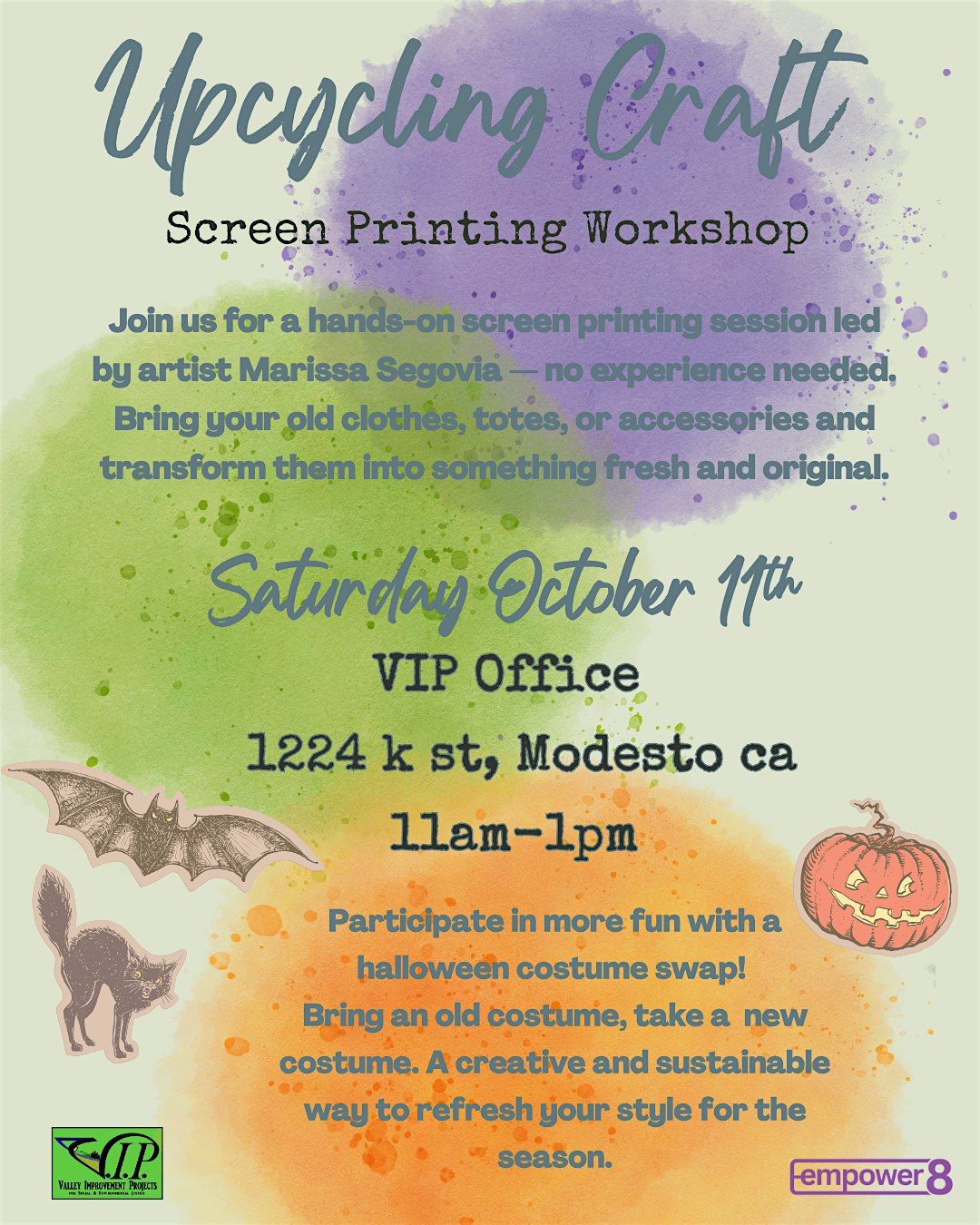 Join us for a hands-on screen printing session led by artist Marisa Segovia โ no experience needed. Bringyour old clothes, totes, or accessories and transformthem into something fresh and original. Participate in more fun with a halloween costume swap! Bring an old costume, take a new costume. A creative and sustainable way to refresh your style for the season.