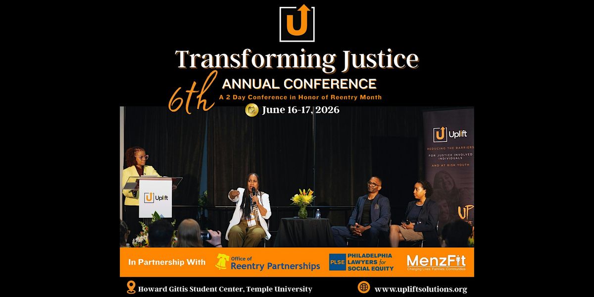 The 2026 Transforming Justice Conference is Uplift Solutions' 6th annual two-day convening in honor of Reentry Month. Guided by the theme "Up is the Only Way Out," the conference brings together justice-impacted individuals, nonprofit leaders, policymakers, educators, faith leaders, corporate partners, and community advocates to advance restorative practices, economic mobility, and systemic change.