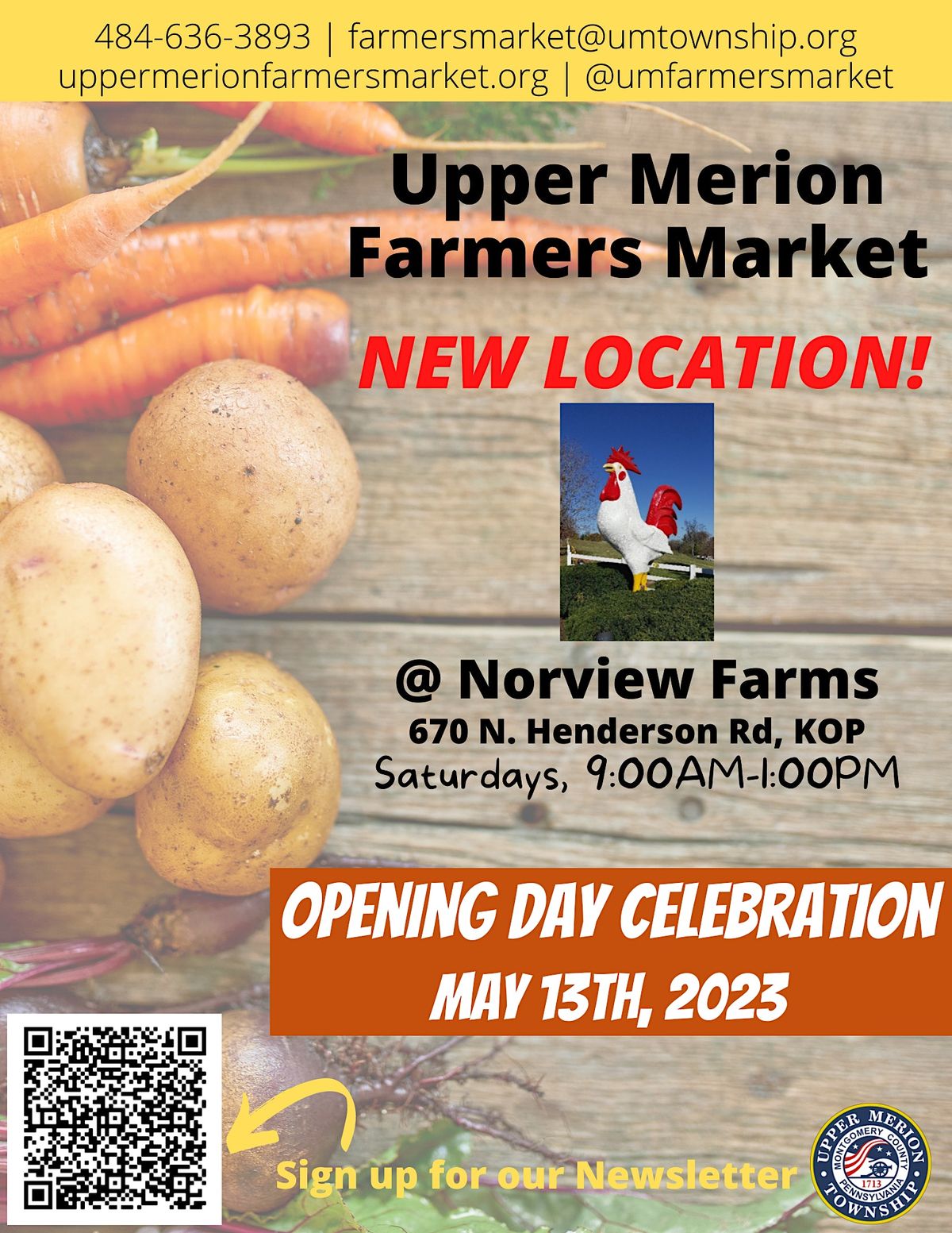The Market is open every Saturday, rain or shine, from 9:00AM to 1:00PM during the regular season (mid-May to September) located at Nor-View Farms at 670 N. Henderson Rd, King of Prussia PA.