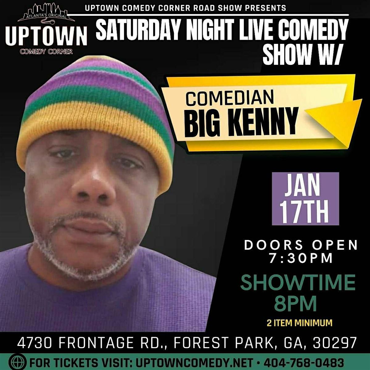 Welcome to Uptown Comedy Corner Presents: Saturday Night Live with Big Kenny! Get ready to laugh your socks off at this hilarious event happening at 4730 Frontage Rd.