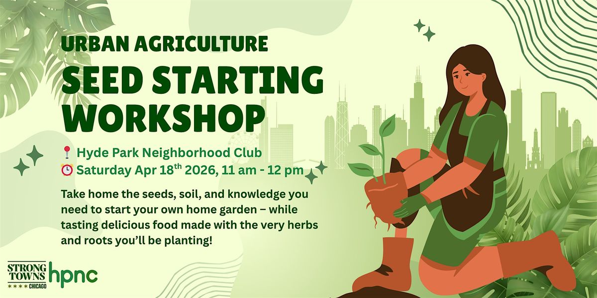 Join Strong Towns Chicago on Saturday, April 18th at Hyde Park Neighborhood Club for a hands-on seed starting workshop, where you’ll take home the seeds, soil, and knowledge you need to start your own home garden! We’ll dive into the vital role urban farming plays across Chicago for housing affordability, racial equity, and climate adaption — all while tasting delicious food made with the very herbs and roots you’ll be planting!