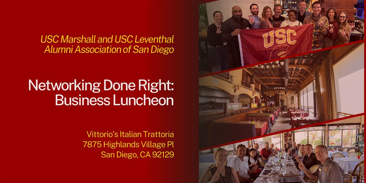 Join Marshall alumni & fellow San Diego Trojans at our networking luncheon. All Trojan alumni are welcome, so invite your friends! Fight on!About this Event