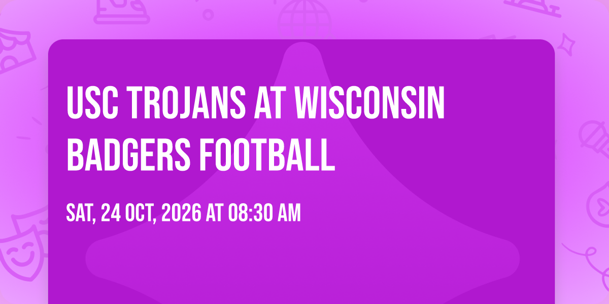 📍 Location: 43.0696, -89.412🌟 Step into a world of wonder at USC Trojans at Wisconsin Badgers Football, where extraordinary moments await! 🏛️ Located at Camp Randall Stadium in dynamic Madison, WI, this event will become the talk of the town. 📅 Join us on October 24th, 2026 at 08:30 AM for a celebration that defies the ordinary. ✨ This curated experience brings together the best of entertainment, culture, and community spirit. Every detail has been thoughtfully planned to ensure an unforgettable experience for all our guests. 🎯 Take advantage of this opportunity to be part of something special. 🎊 Early registration is recommended as space is limited!