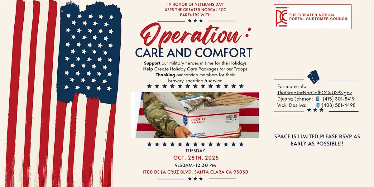 Join The Greater NorCal PCC and Operation Care and Comfort in creating care packages to help honor and support our Troops.About this Event