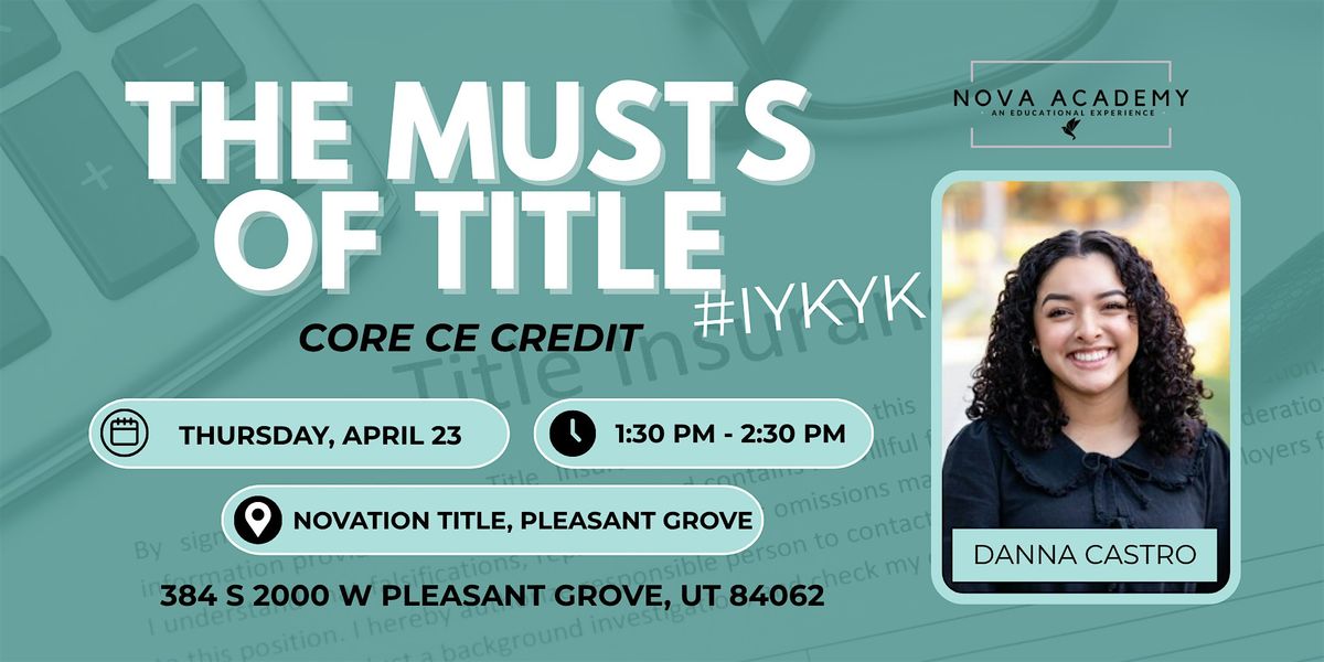 (Utah County) The Musts of Title #IYKYK - CORE CE