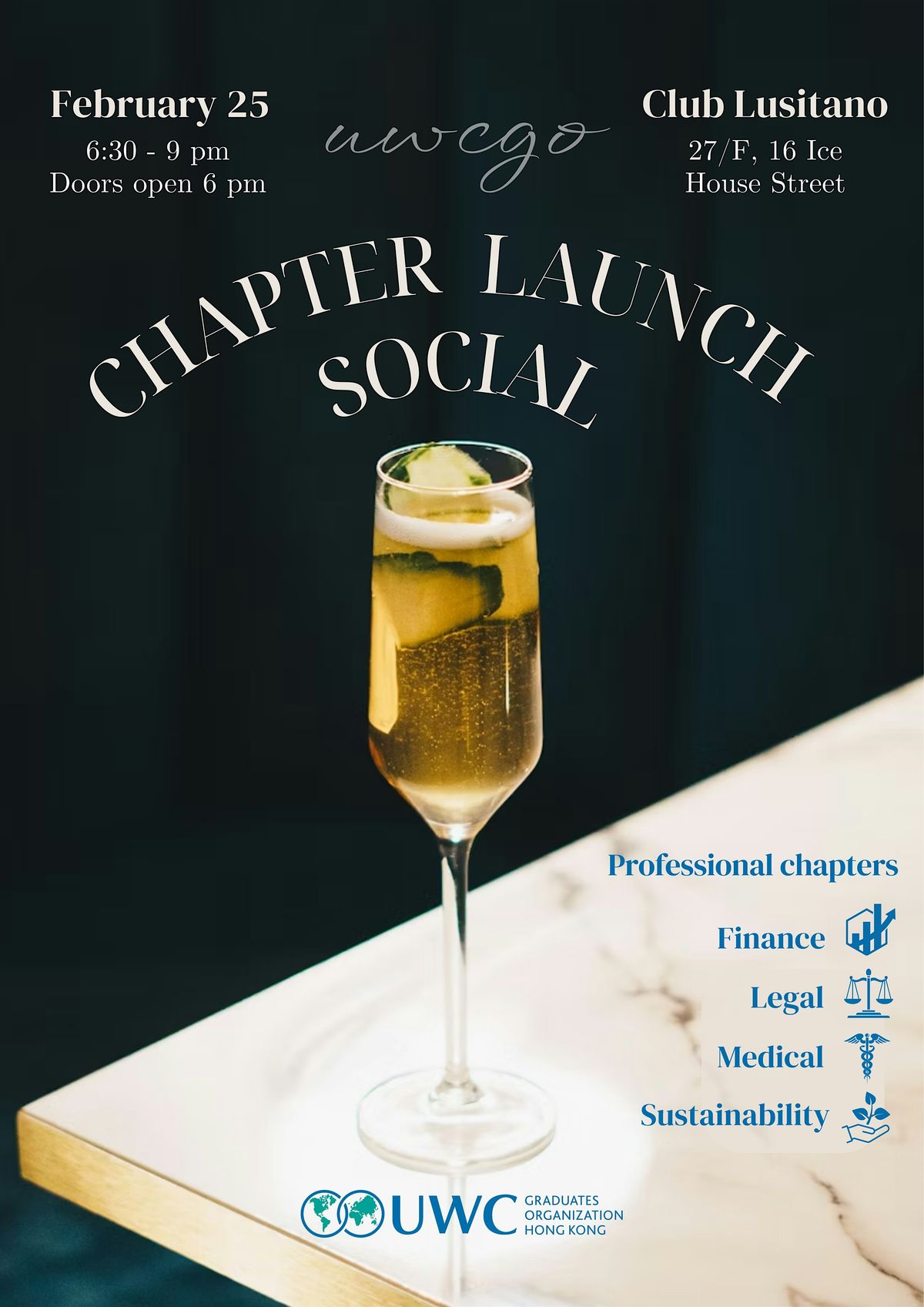 Thanks to your tremendous support, we are pleased to announce the launch of UWCGO’s four Professional Chapters — Legal, Finance, Medical, and Sustainability ✨