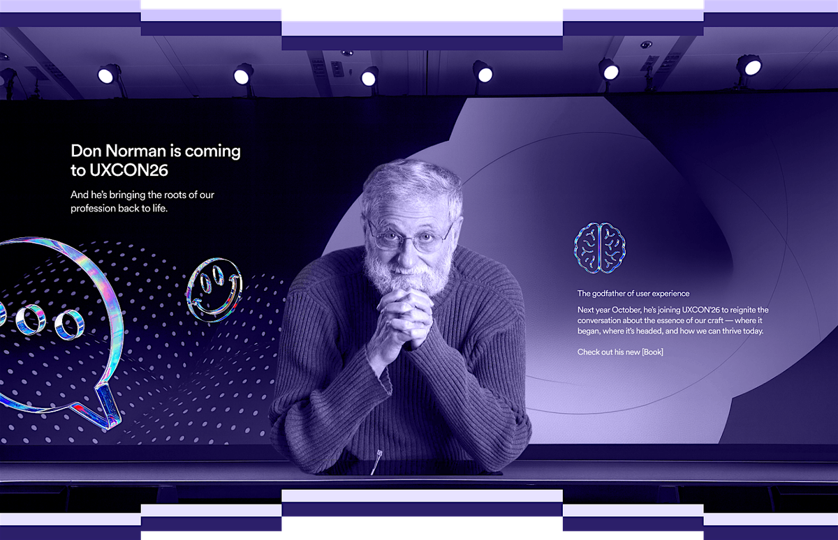 Yes, that Don Norman. The godfather of user experience. He’ll join us for a live Q&A session and a closing keynote to help us reignite the roots of our field—where we started, where we’re going, and how we thrive together now.