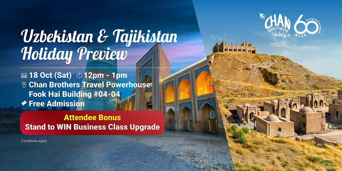You are invited to join our Uzbekistan & Tajikistan Holiday Preview on 18 Oct (Sat) from 12pm to 1pm.