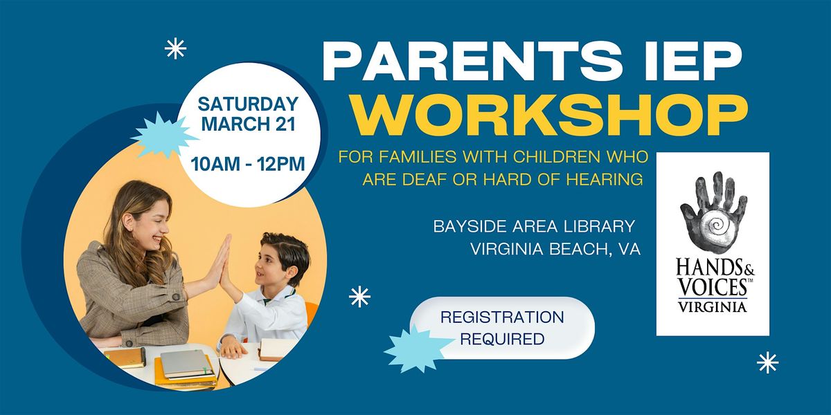 Virginia Hands & Voices invites you to our first FREE educational workshop for families of children who are deaf and hard of hearing in Hampton Roads. Join us at Bayside Area Library in Virginia Beach on Saturday, March 21 from 10am - 12pm for content and conversation you won't want to miss!