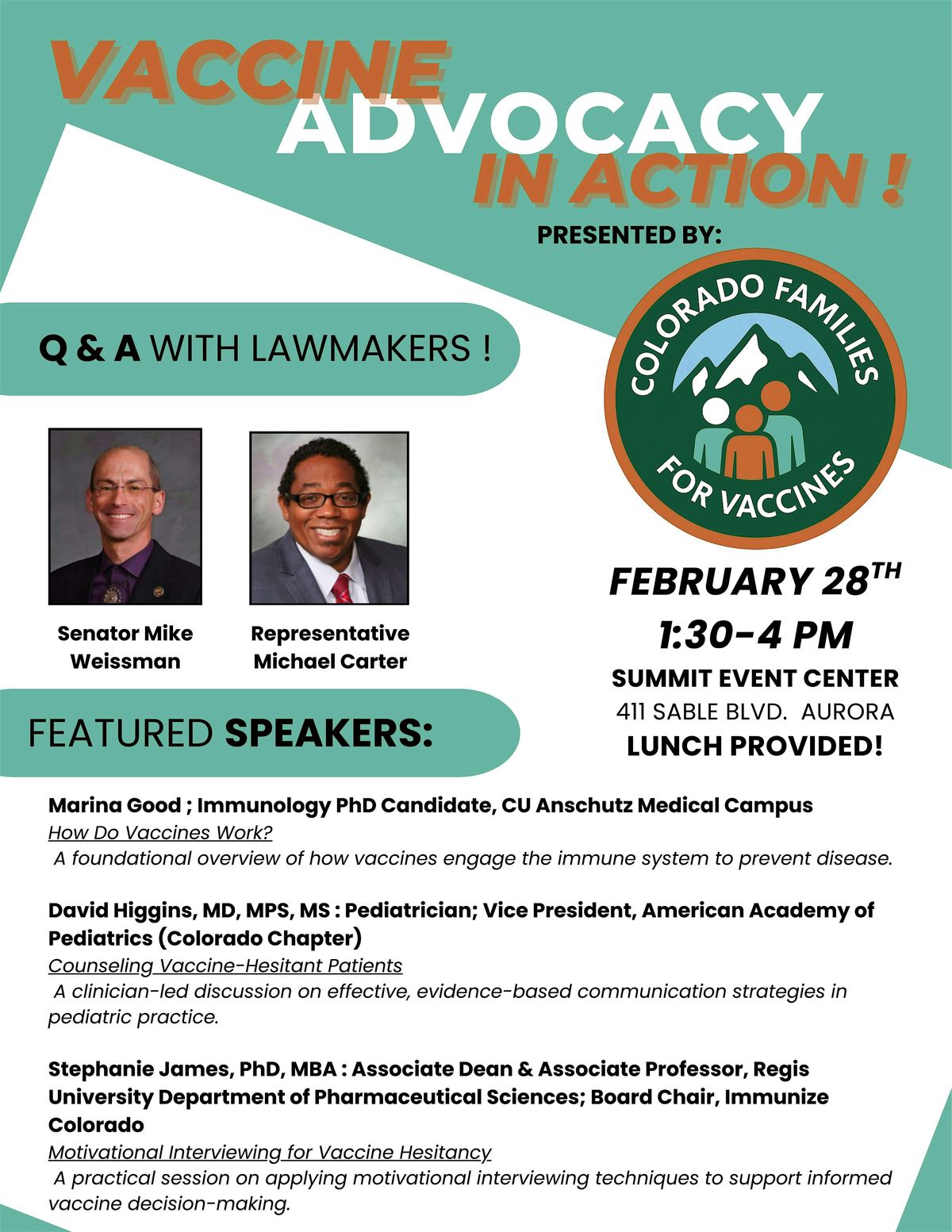 Vaccine Advocacy in Action brings together leading experts and local lawmakers for an engaging discussion on the science, impact, and urgent importance of vaccines amid growing attacks on public health. Three expert speakers will explore how vaccines work, address vaccine hesitancy, and share evidence-based strategies for effective communication and community engagement. The event will conclude with a Q&A session featuring local lawmakers, creating space for dialogue on policy, advocacy, and protecting access to lifesaving vaccines. This event centers advocacy as a critical tool for safeguarding public health and empowering communities to stand up for science-based decision-making.