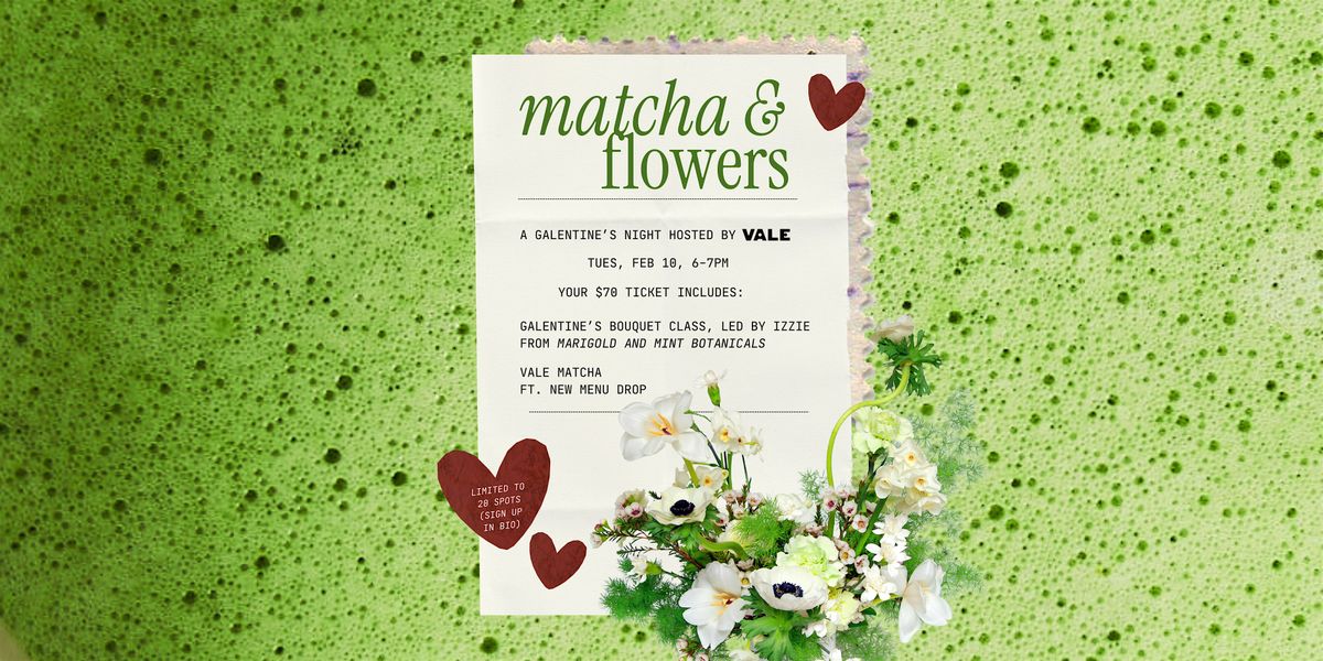Join us for an evening of blooms, matcha, and community at Vale's Galentine's Bouquet Making Event.