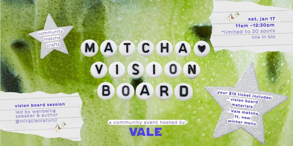 Join us for an afternoon of intention, matcha, and community at Vale's Vision Board Community Event.