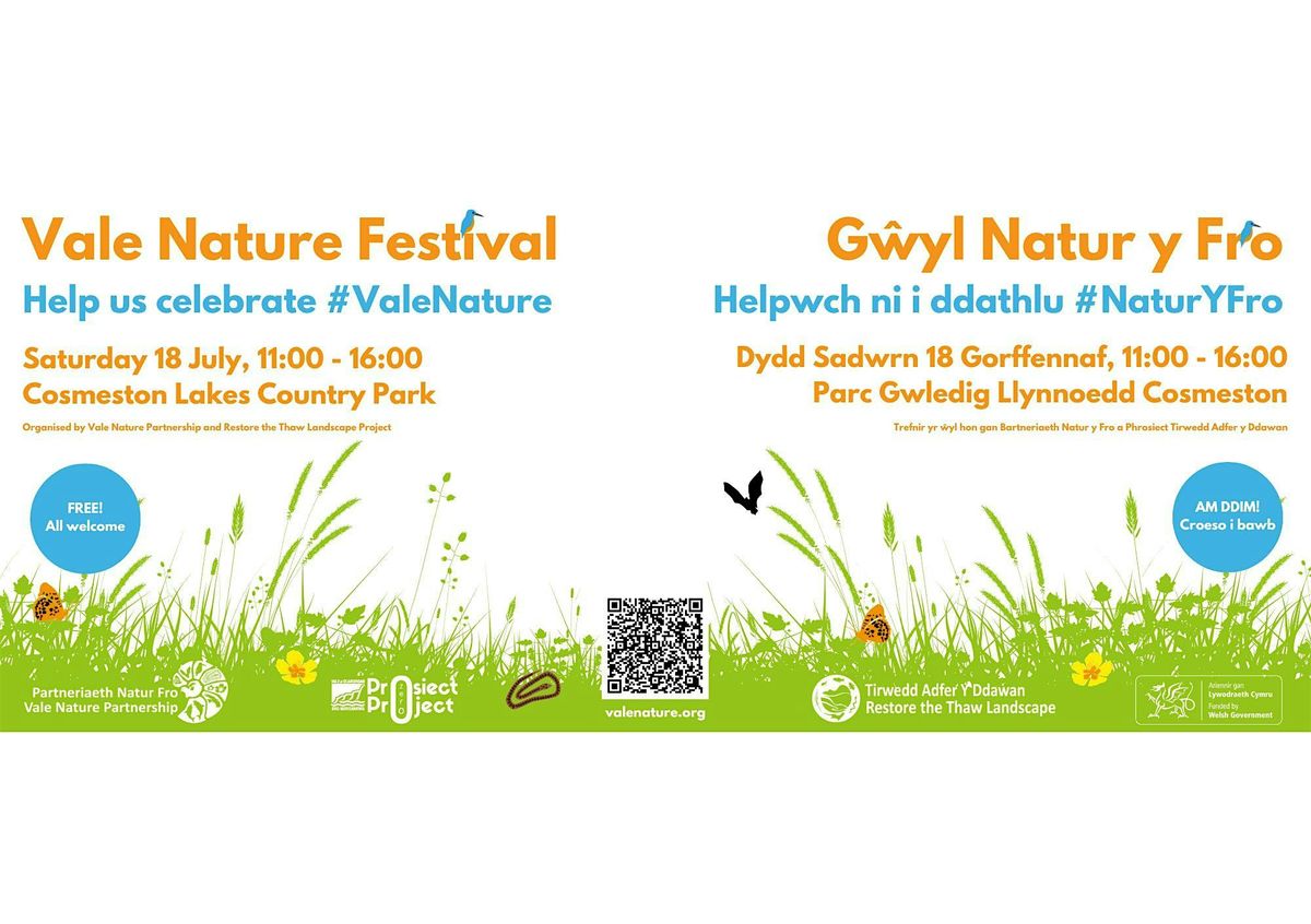 Join us and our partners at the Vale Nature Festival on Saturday 18th July (11-4pm) at Cosmeston Lakes, Penarth for a free family-friendly day celebrating all things nature in the Vale!