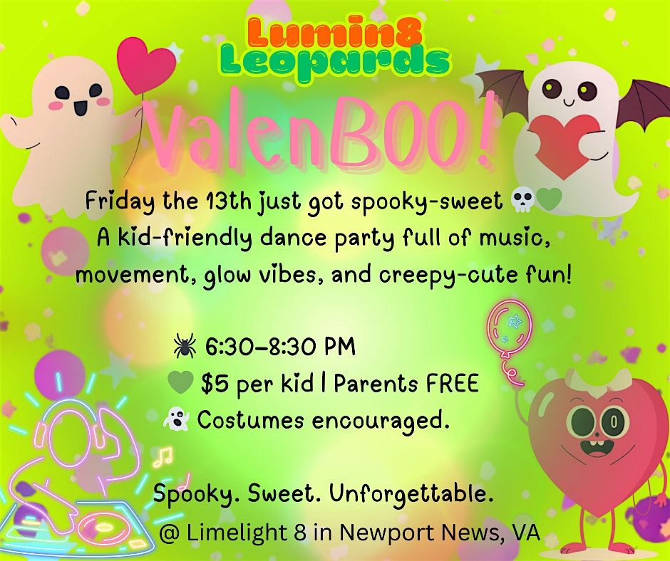 Love gets spooky with our Lumin8 Leopards DJ performance at Limelight 8 with our ValenBOO Party—a Friday the 13th celebration designed for kids who love to dance, dress up, and vibe in a safe, high-energy environment.
