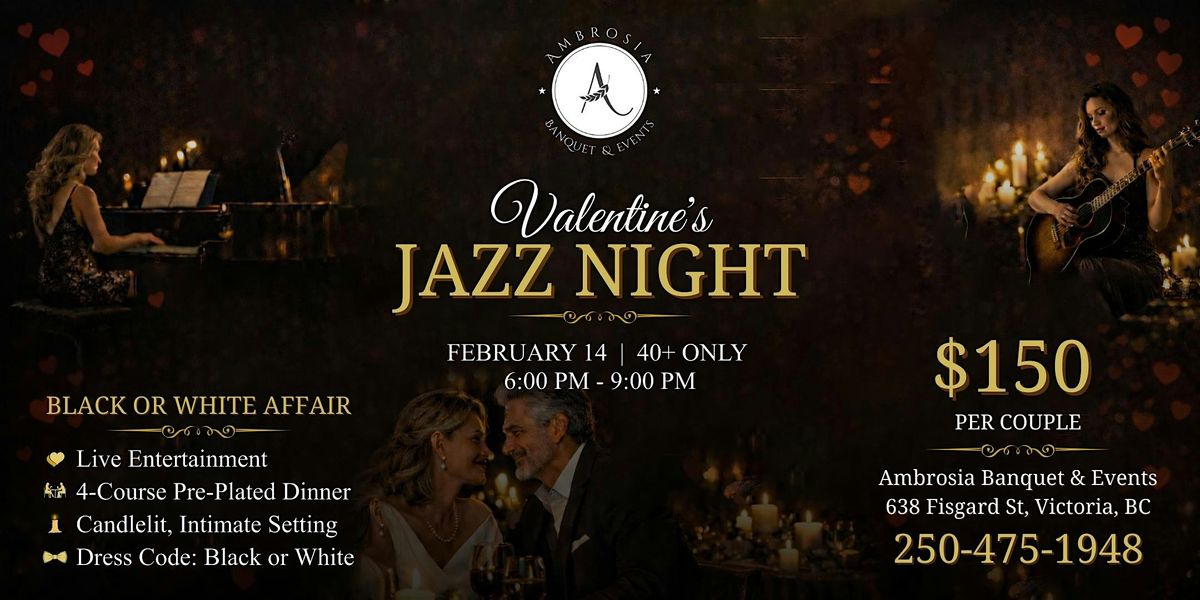 Come join us for a magical evening at Ambrosia Conference & Event Centre on February 14, 2026 at 6:00 PM for a night filled with love, candlelight, and smooth jazz music. Let the ambiance sweep you off your feet as you enjoy a delicious dinner with your special someone.