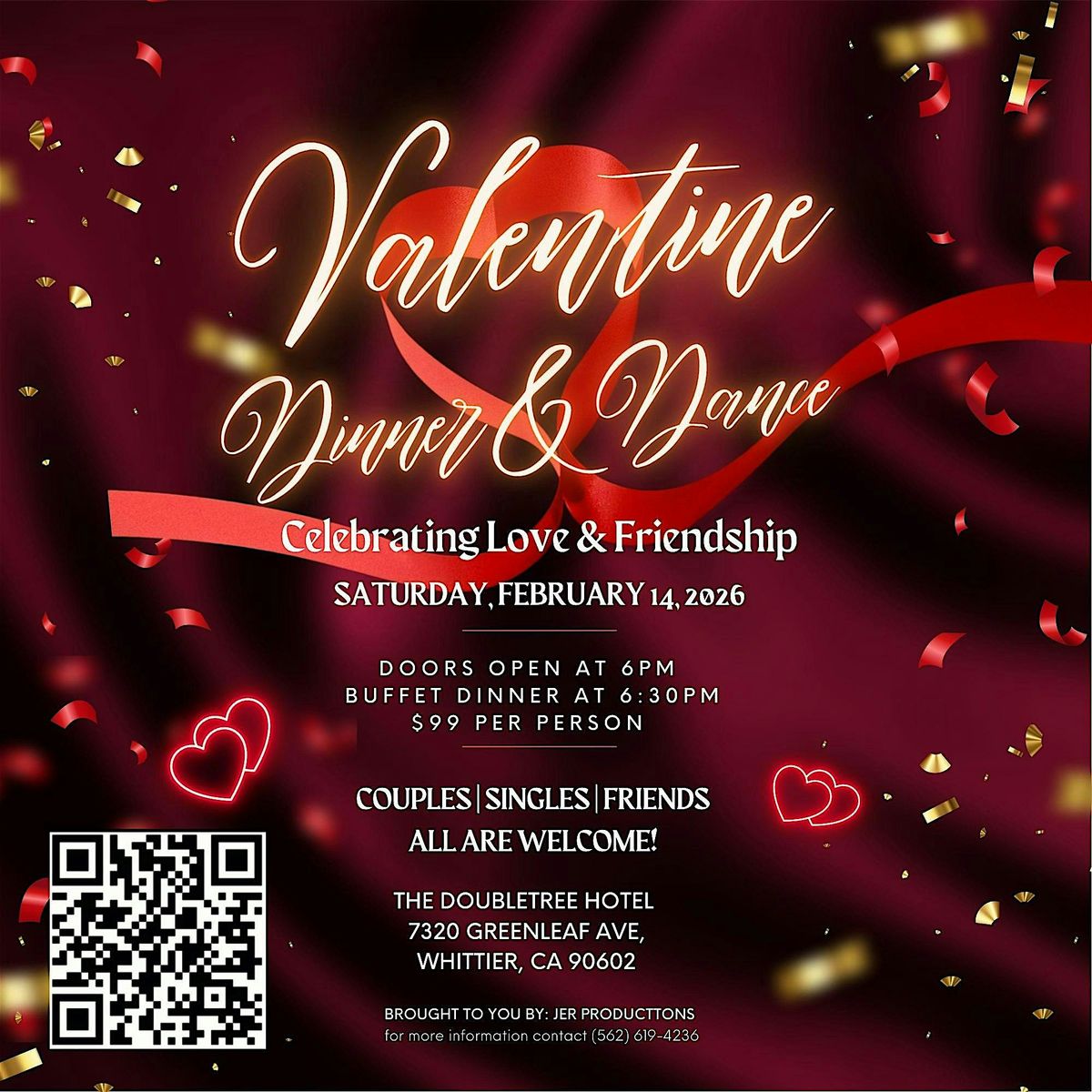 Join us for an elegant evening of dining, dancing, and celebration on Saturday, February 14 at the DoubleTree Hotel in Whittier, California. Doors open at 6:00 PM, followed by a buffet dinner at 6:30 PM.