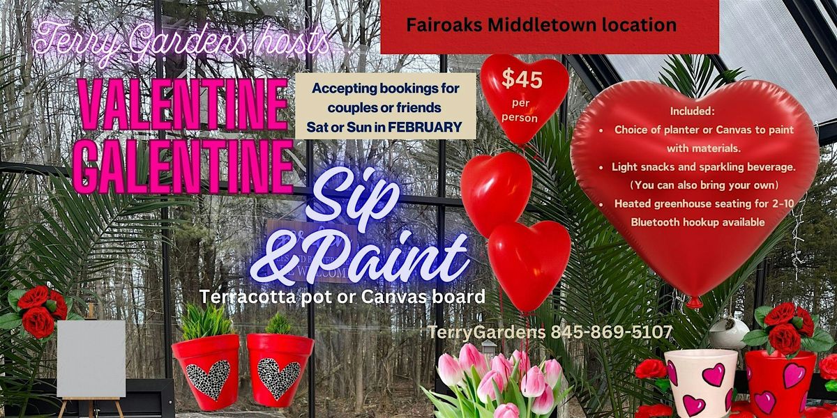 Welcome to Valentine/Galentine! Join us at Terry Gardens for a fun-filled day of creativity and relaxation. Grab your valentine or a friend and pick up a paintbrush, and get your creativity flowing with some painting. This in-person event is the perfect opportunity to unwind, socialize, and unleash your inner artist. No experience necessary, you will have a choice to paint either a terricatta pot or a canvas painting. This is a self directed paint with various inspirational pictures, – just come ready to have a good time! Don't miss out on this unique experience to sip and paint in a beautiful greenhouse setting. Light snacks and sparkling beverage will be included, you are welcome to bring your own. See you there!