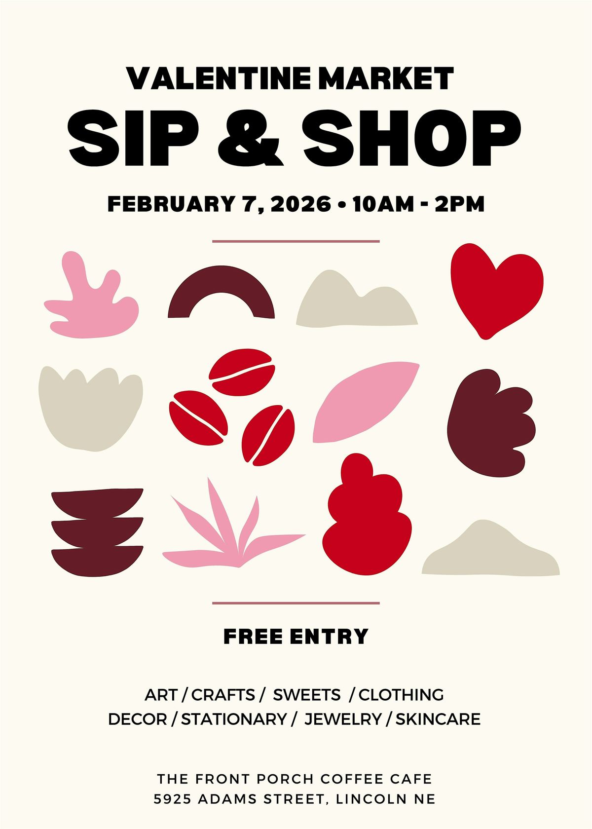 Get ready to sip, shop, and socialize at our Valentine Market! This in-person event is the perfect way to celebrate love with fun vibes, unique finds, and tasty drinks. Whether you're looking for cute gifts or just want to enjoy a chill atmosphere, we've got you covered. Don’t miss out on this awesome shop local experience filled with great people and good times!