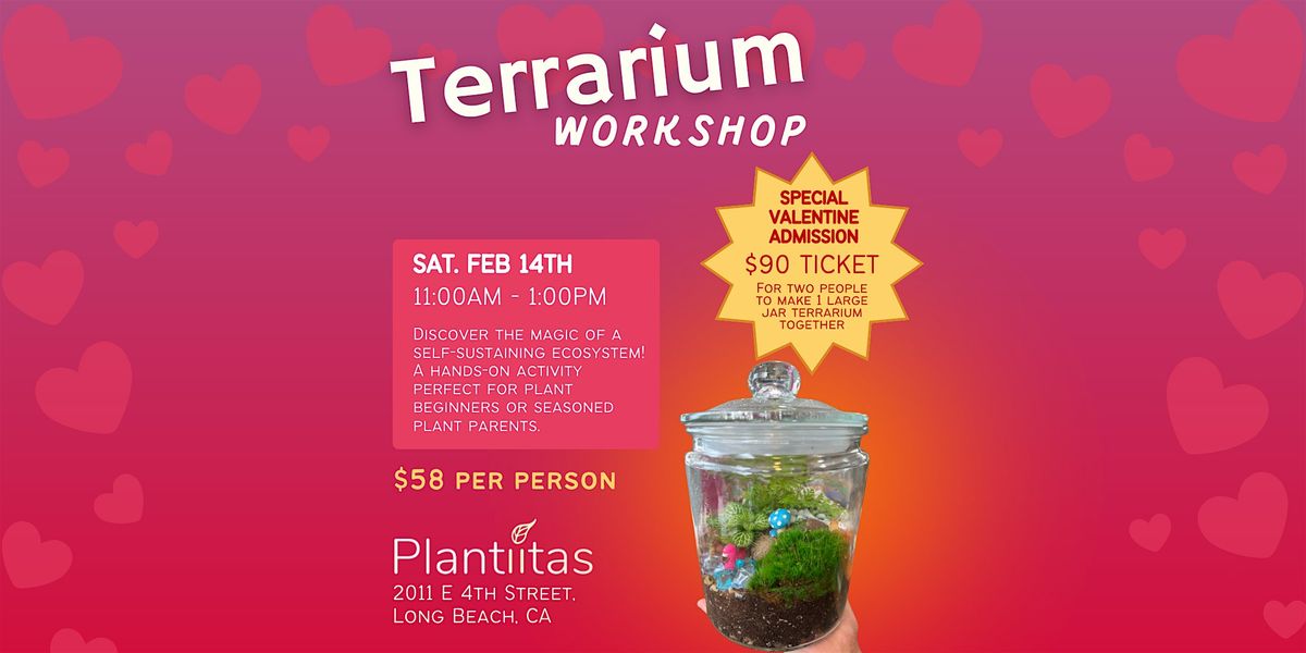 VALENTINE SPECIAL ADMISSION: $90 - for TWO PEOPLE to make ONE terrarium in a larger jar together.