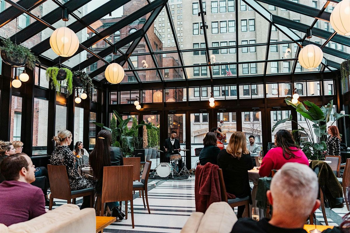 Get into the spirit with soulful sounds, including classic love songs and jazz originals, at our Valentine's Birdy Session—an evening of live jazz in The Birdy Room. Cozy up in lounge seating in intimate low light, while taking in the show-stopping space and city lights at night.