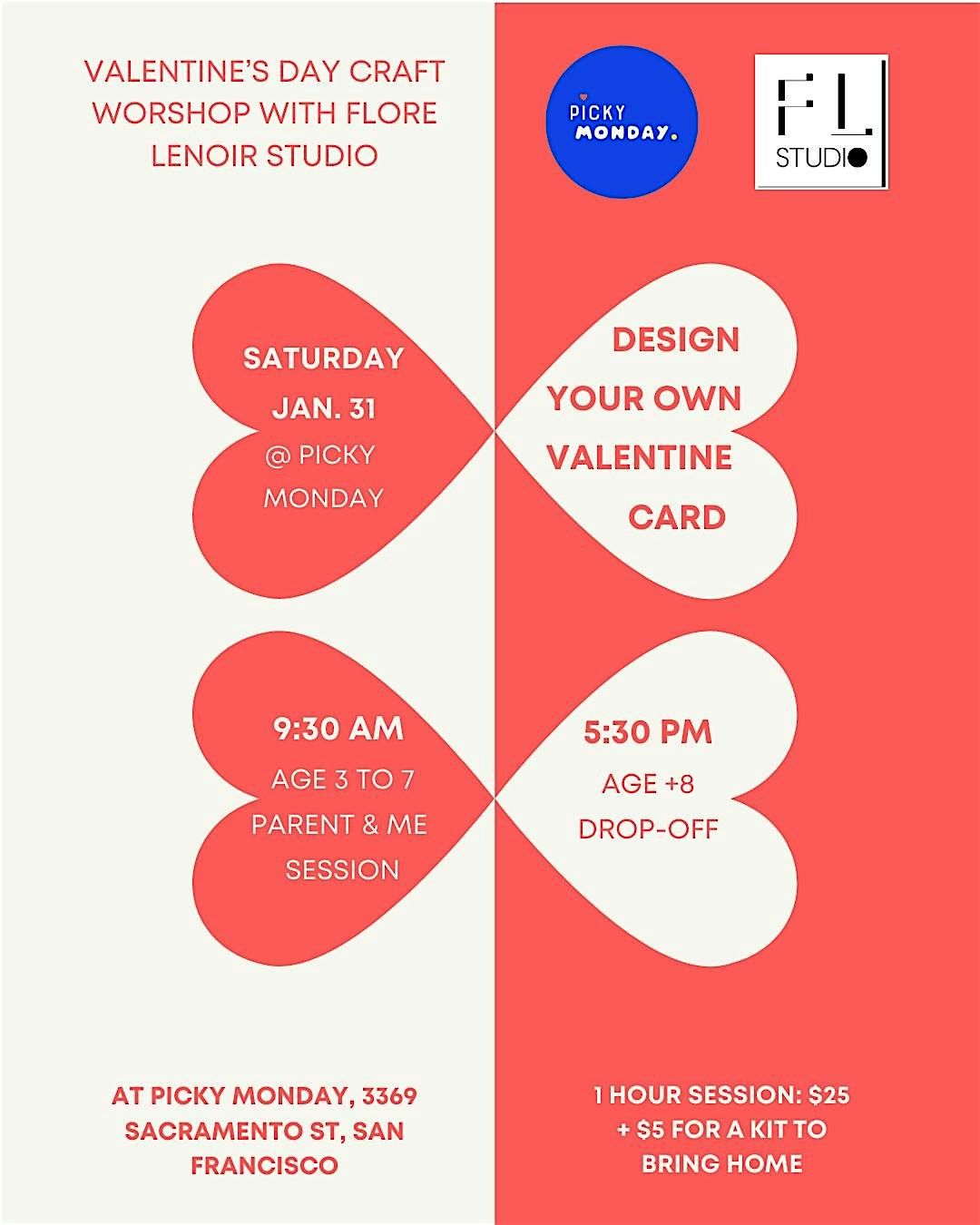 Get ready to get crafty for Valentine's Day at our workshop on Saturday January 31, 2025! 2 sessions available: Age 3-7 / Age +8