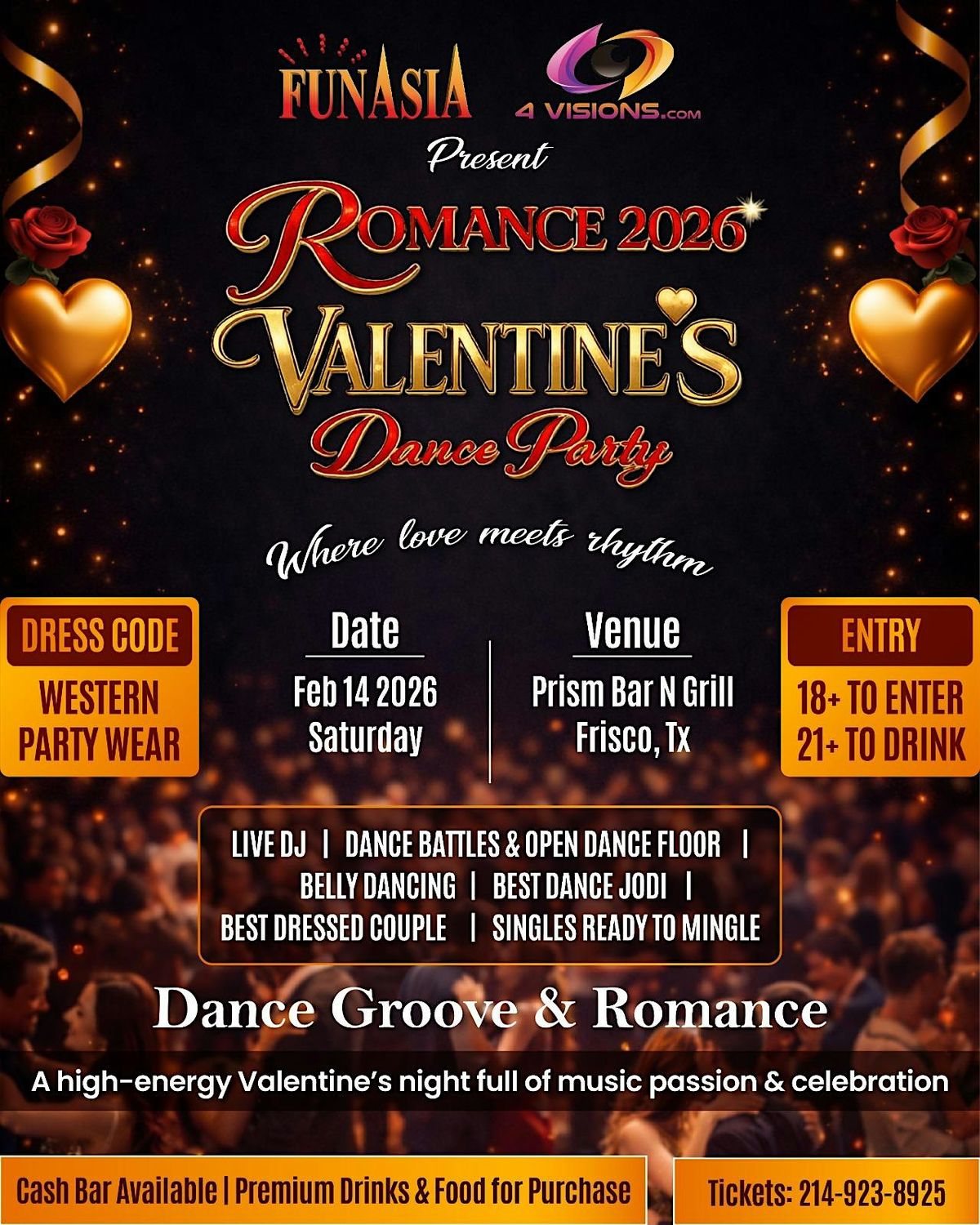 Get ready to dance the night away with your Valentine at the hottest party in town! (18+ Only)(Drinks for purchase ,21+)