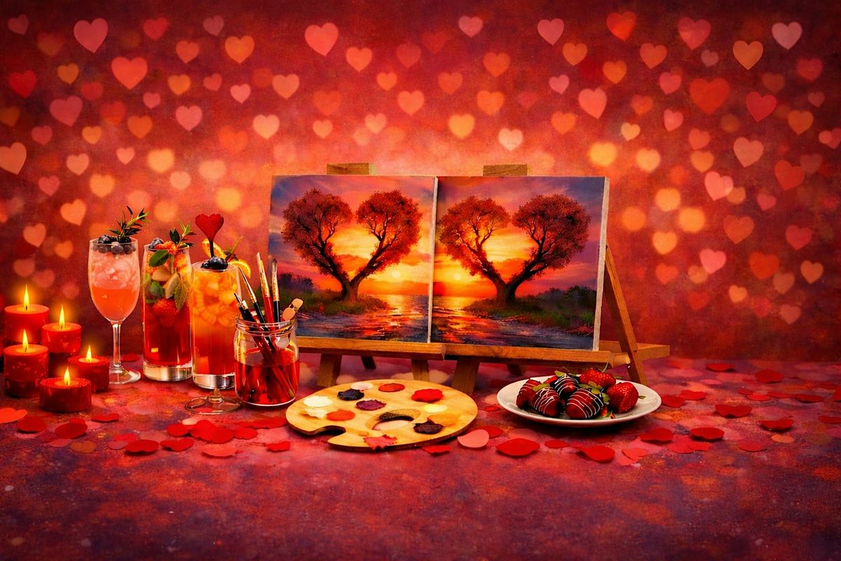 Celebrate Valentine's Day with a self guided Paint & Sip experience designed for couples. This is NOT a paint class, there's no instructor, just a relaxed space for you and your partner to create together at your own pace. Enjoy Valentine themed mocktails, and a cozy romantic atmosphere. The focus is quality time! $125.00 per couple!