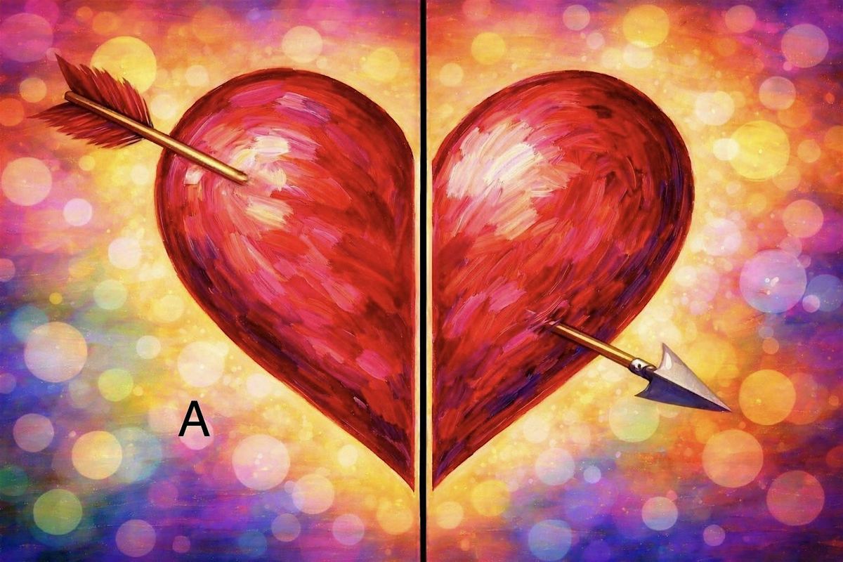 Get ready for a fun in-person evening filled with creativity and good vibes! Join us for the Valentines Date Night Paint Party, where you and your special someone can unleash your inner artists. You'll each paint half of the painting! No experience needed—just bring your smile and a love for painting! It's the perfect way to connect, laugh, and make memories. Don't miss out on this awesome night of paint, and sweet company!