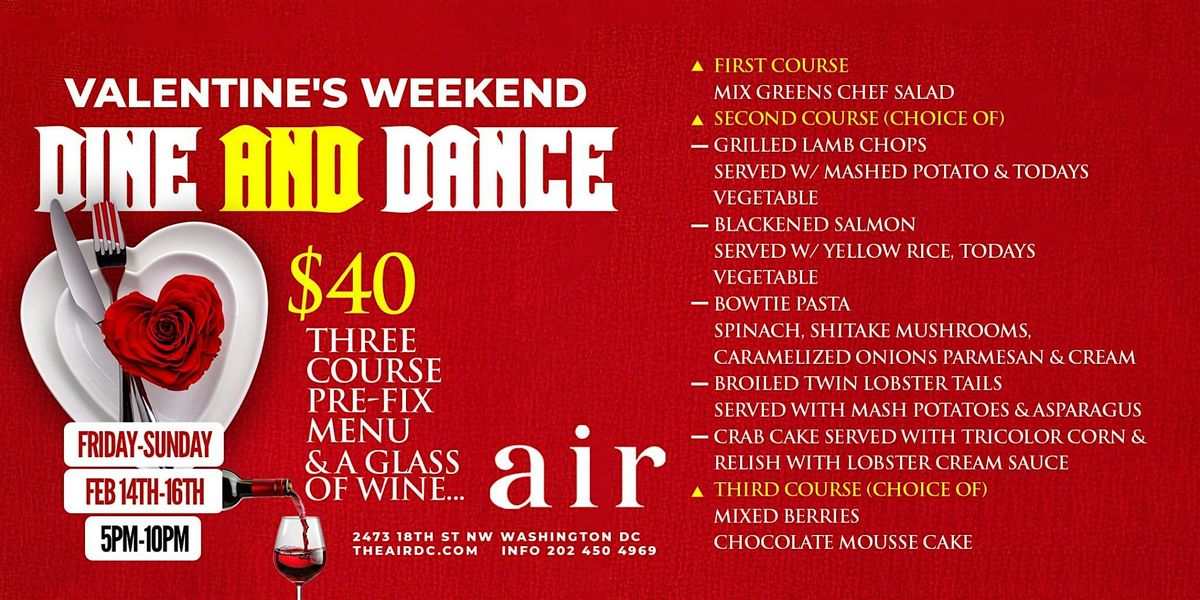 Celebrate love at Air Restaurant & Lounge this Valentine's Day! Join us for a romantic evening filled with delicious food, specialty cocktails, and live music. Treat your special someone to an unforgettable night out in the heart of DC. Make your reservation now to secure your spot for this exclusive event. Don't miss out on this chance to create lasting memories with your loved one!