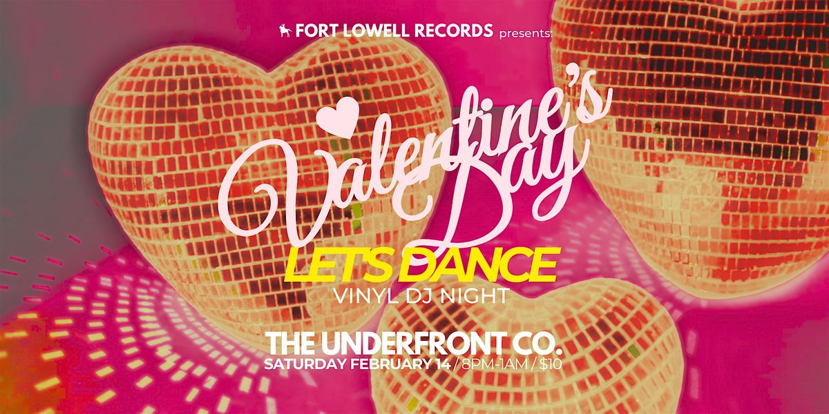 Celebrate Valentine's Day at The Underfront Co. in Downtown Wilmington NC on Front Street — Saturday, February 14th — with a very special Valentine's Day Edition of Fort Lowell Records’ own LET’S DANCE Vinyl DJ Night / Dance Party featuring all of your favorite love songs within a variety of musical genres — Pop, Disco, Boogie, Indie, Hip-Hop, R&B, Electronic, etc. — including the latest hits and spanning the past five decades. Dancing starts at 8:00pm and goes all night. Tickets are available to buy in advance; otherwise a $10.00 cover charge will be collected at the door upon entry paid via Cash, Credit Card, or Venmo.