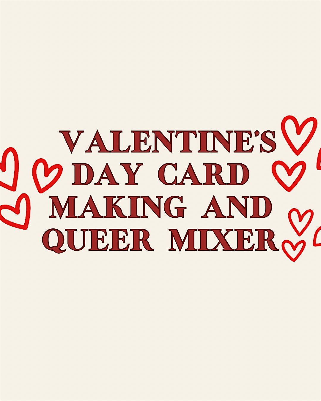 Join us for a super chill in-person event where you can get creative making Valentine's Day cards and trade them with fellow queers! It’s all about good vibes, cool crafts, and making new friends. Whether you’re a pro artist or just wanna have fun, come hang out, share some laughs, and spread the love!