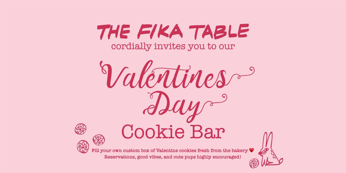 We’re hosting a pop-up cookie bar on Saturday, February 14th, right in our own bakery! Come create your own personal holiday cookie box with a selection of Valentine's cookies from The Fika Table!
