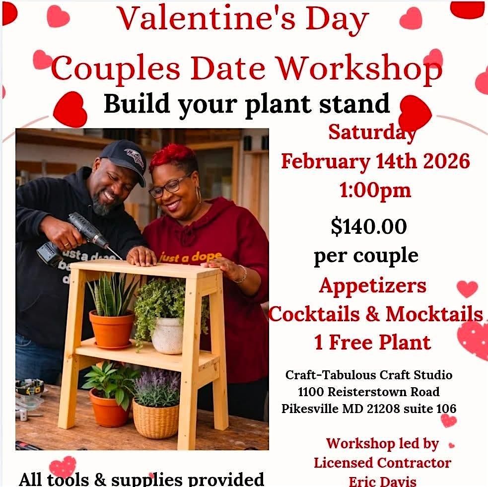 Join us for a Couples Plant Stand Construction Workshop — the perfect mix of love, laughter, and hands-on fun!