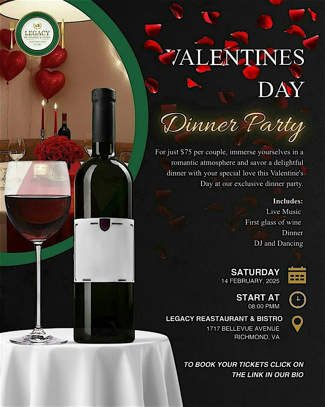 Join us for a romantic evening filled with good vibes, delicious food, and great company! Whether you're coupled up or flying solo, this in-person event is all about celebrating love and friendship. Expect tasty bites, fun conversations, and maybe even a little dancing. Dress your best and bring your smile—let's make this Valentine's Day unforgettable!