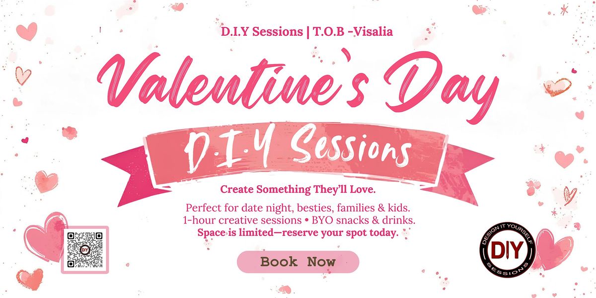 Join us at T.O.B – Visalia for our Valentine’s Day D.I.Y. Sessions, a hands-on creative experience where you design and personalize custom gifts in a fun, relaxed studio environment. Perfect for date night, besties, families, and kids!