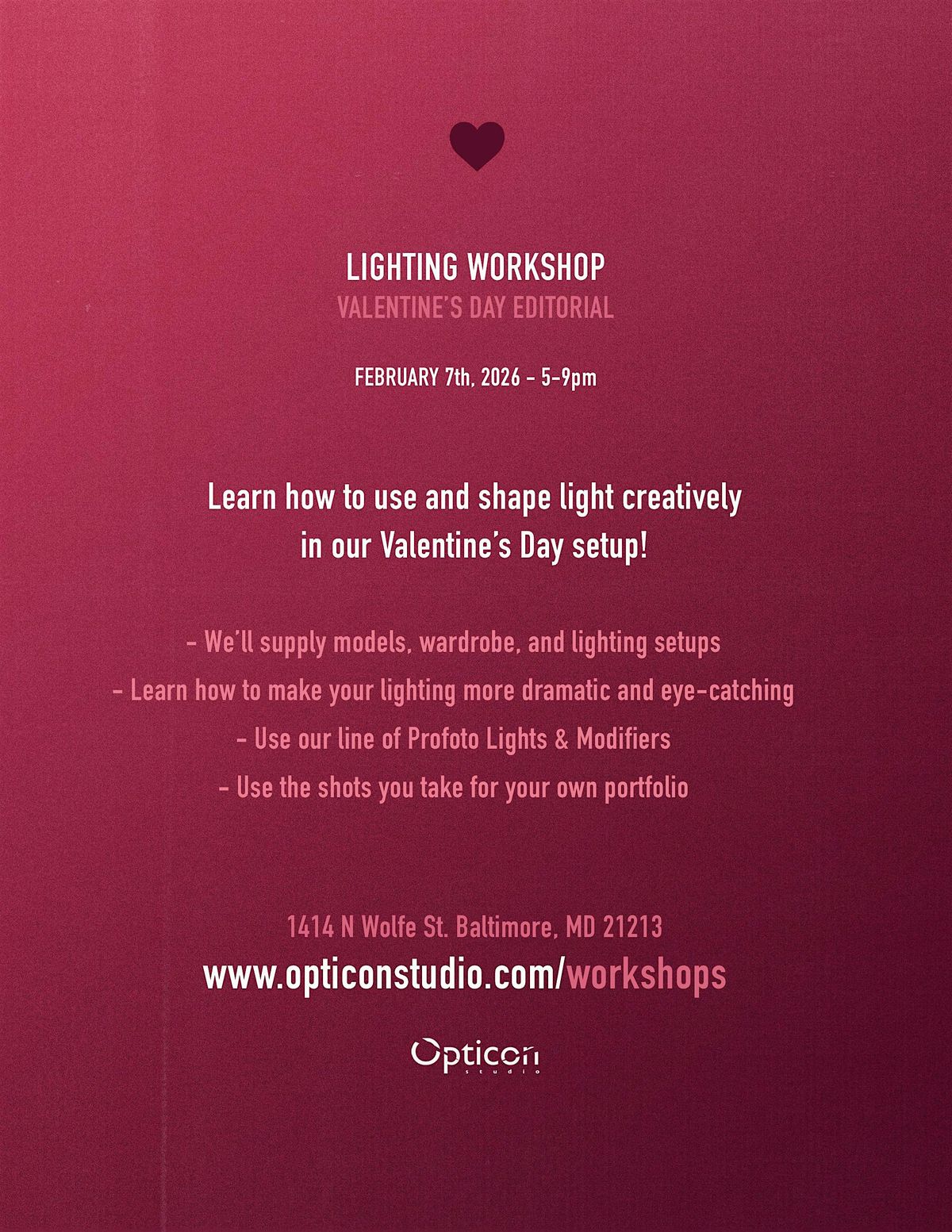 We'll provide models, wardrobe, the setup, lighting triggers, you show up, learn and shoot! Use the images you get for your portfolio and learn how to up your fashion lighting! Use our entire line of Profoto lights and modifiers!