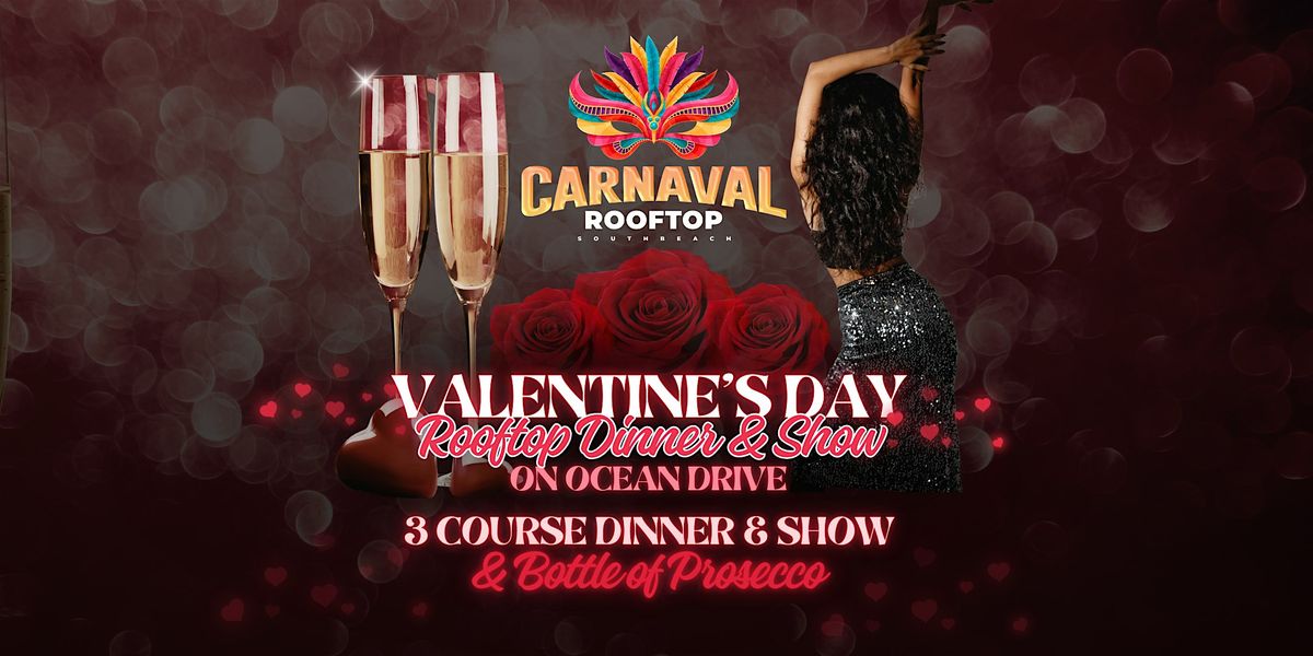 Celebrate Valentineās Day at Carnaval Rooftop, South Beachās premier rooftop restaurant and bar on Ocean Drive. Enjoy an elevated dinner & show experience featuring live dance performances, music, and dancingāpaired with a romantic 3-course menu for two and a bottle of Prosecco included with your ticket.