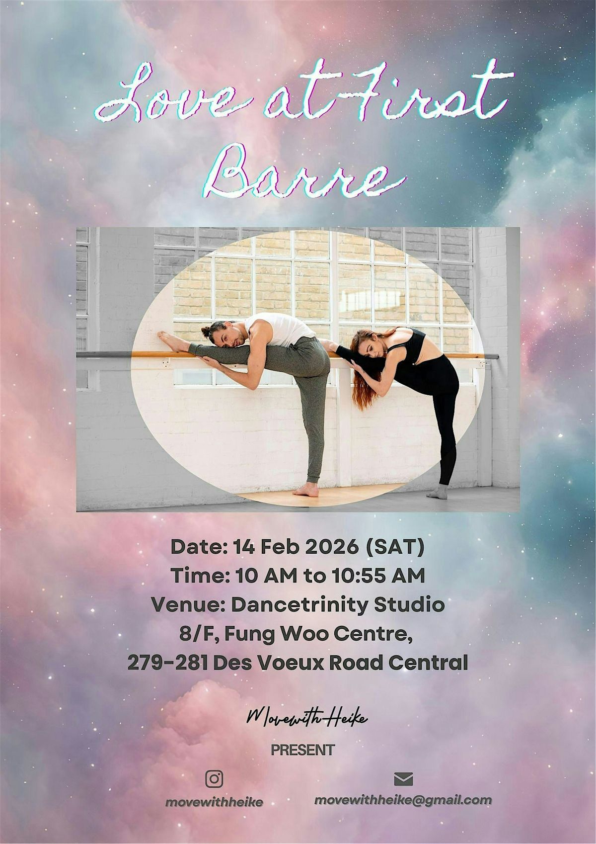 Join us for a solid 55 minutes of shakes, tucks, and pulses that’ll get your heart pumping and your spirits soaring. Whether you come with your partner, bestie, sibling, or gym crush, this high-energy barre class is all about moving with love and good vibes.