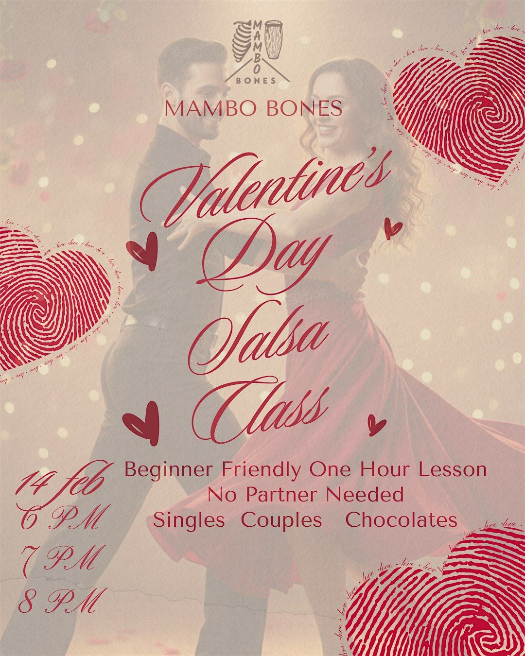 Spice up your Valentines Day with our Valentines Day Special Salsa Classes! Join us on February 14, 2026 at 8:00 PM for a romantic evening filled with dance and passion. Whether you're a beginner or an experienced dancer, come and spice up your Valentine's Day with some sultry salsa moves. Don't miss out on this chance to impress your partner or meet someone new on the dance floor. Partners will rotate or you can choose to stay with a partner. Get ready to dance the night away and create unforgettable memories. See you there!