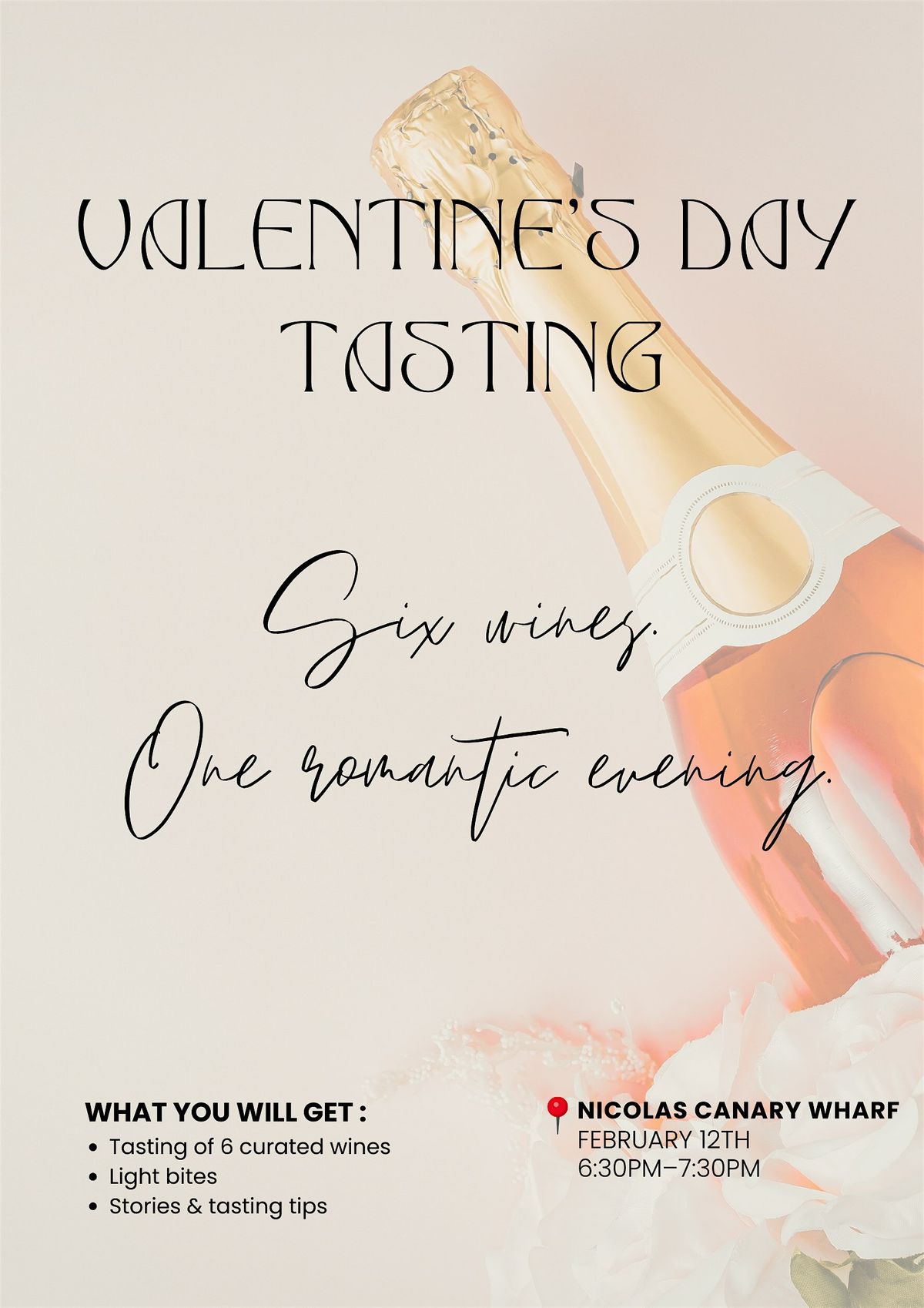 Get ready for a fun and delicious evening! Join us in person to explore a variety of 6 wines perfect for Valentine's Day. Whether you're celebrating with your special someone or just love great flavors, this event is for you.