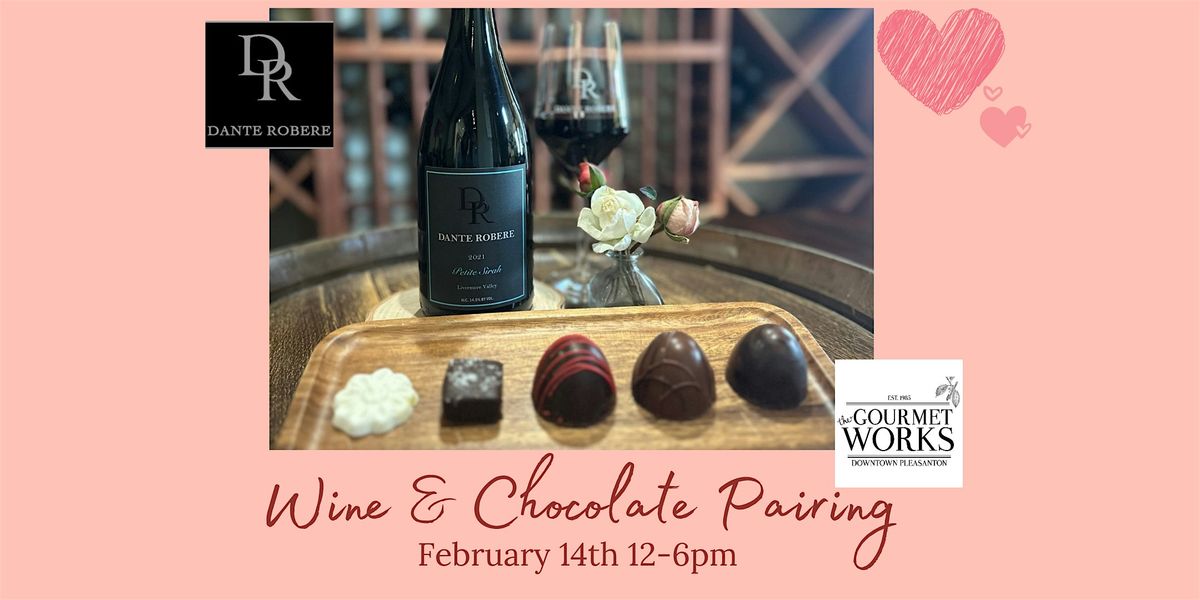 Celebrate Valentine’s Day at Dante Robere with our special Wine & Chocolate pairing! In addition to our standard wine flights and private tasting room experience, will also be offering a Valentine's Day Wine Flight & Chocolate Pairing, a flight of 5 wines each paired with a artisan selection of truffles and fudge created by The Gourmet Works in downtown Pleasanton. The Wine Flight & Chocolate Pairing is $20/person for club members (2) plus (2) guests and $35/person for non-club members. (See pairing below).