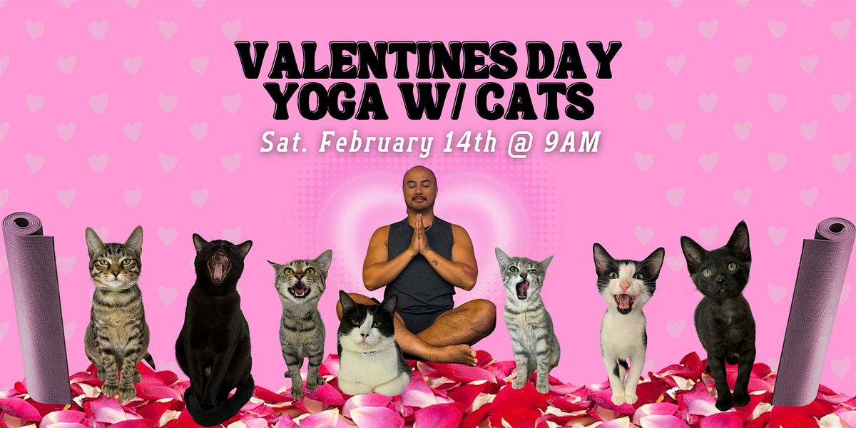 Get ready for a purr-fect way to celebrate Valentine's Day! Join us in person for a fun and relaxing yoga session surrounded by adoptable rescue cats!